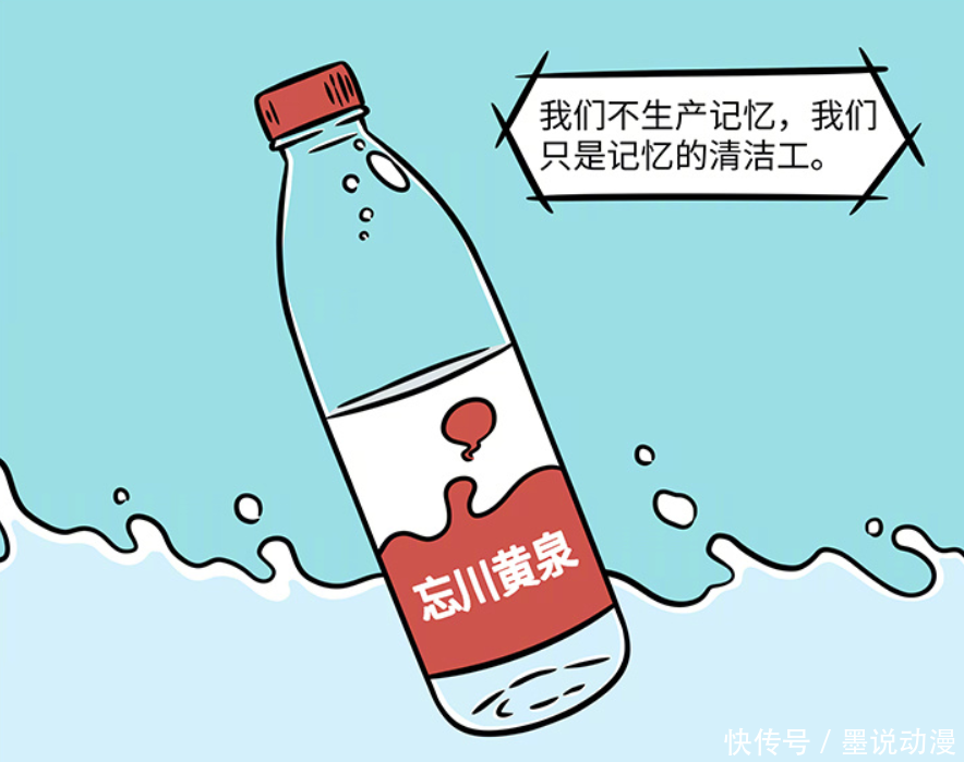 不仅制造奶制品,孟婆汤还能跟黄泉水搭配,变成忘川黄泉。这种饮品类似人类世界的矿泉水,不过还是有特殊效果。广告词还是“我们不生产记忆,我们只是记忆的清洁工”。这种黄泉水肯定很畅销,毕竟想清除记忆就清除记忆。