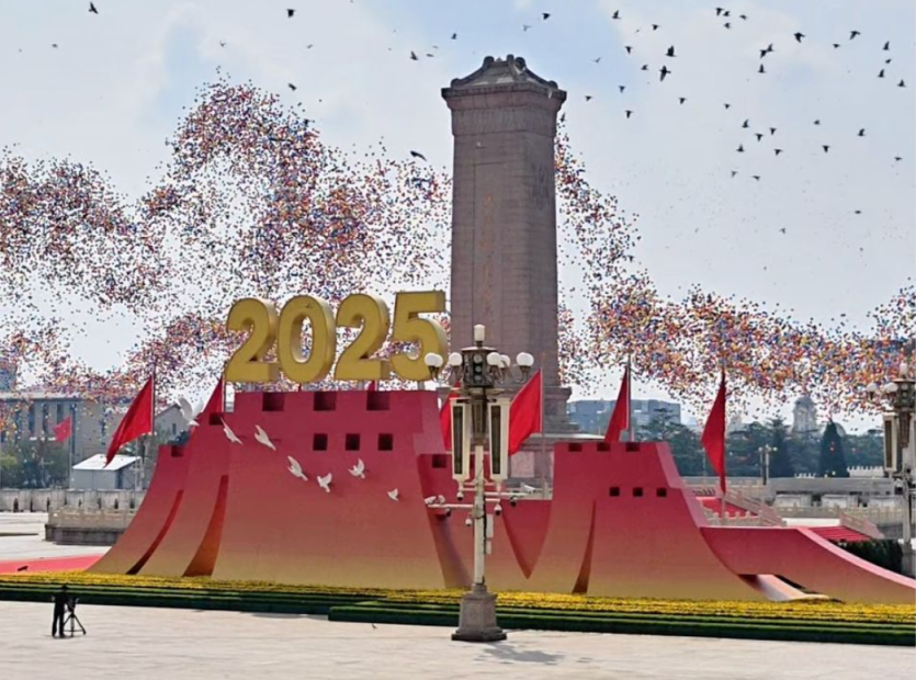 8万羽和平鸽振翅飞翔,盘旋在天安门广场上空,随后8万只彩色气球腾空而起,在空中形成一道绚丽球幕。纪念中国人民抗日战争暨世界反法西斯战争胜利80周年大会上这浪漫壮观的一幕,背后是一场严格精确的“读秒工程”。